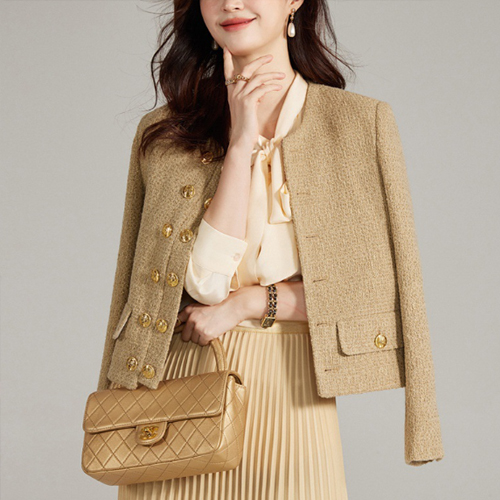 론데즈 여성 클래식 트위드 노카라 크루넥 숏 봄가을 코트 구스다운 자켓