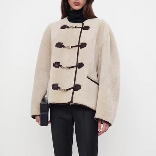 론데즈 프리미엄 페이크 양털 무스탕 더플 코트 자켓 역시즌코트