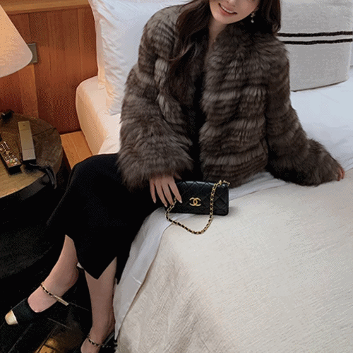 론데즈 선셋 리얼 폭스퍼 100 여우 모피 숏 코트 자켓