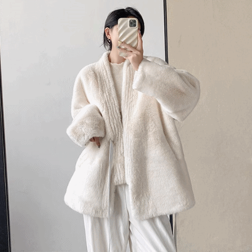 론데즈 에코퍼 페이크 밍크퍼 클리어 무스탕 자켓 코트