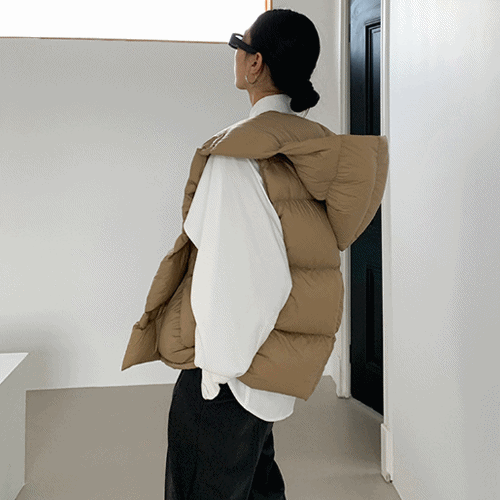 론데즈 여성 덕다운 오리털100 후드 오버핏 패딩 조끼 베스트