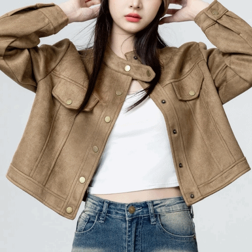 론데즈 바이커 여성 스웨이드 크롭 자켓