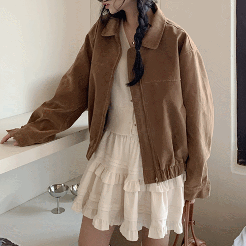 론데즈 스웨이드자켓 레더 집업 루즈핏 자켓 블루종 점퍼 페이크가죽