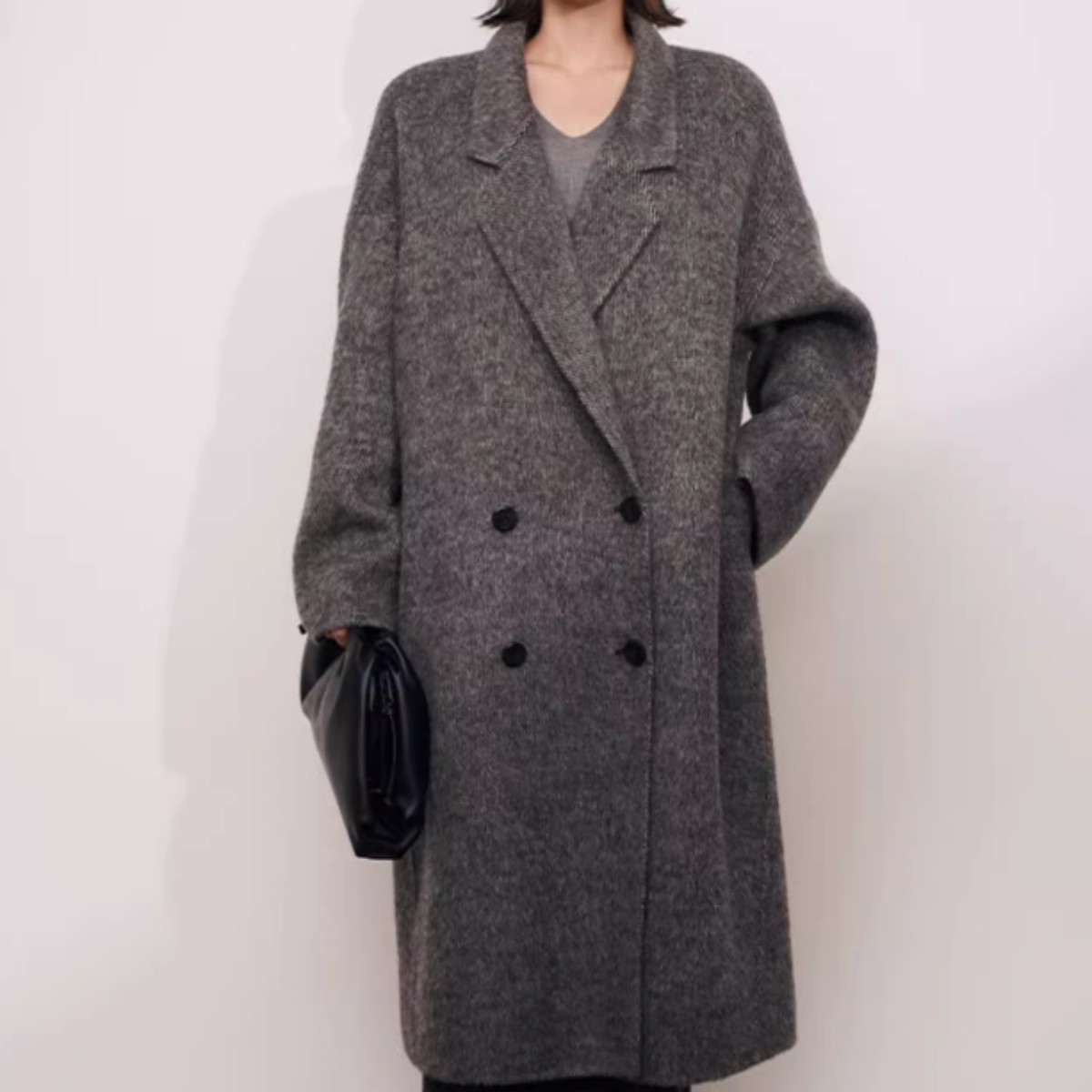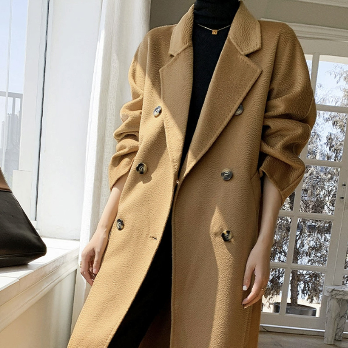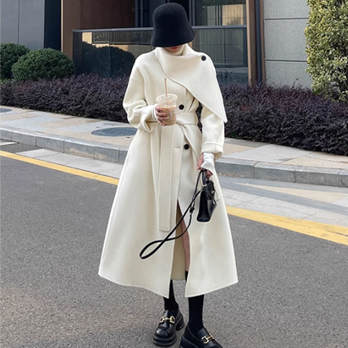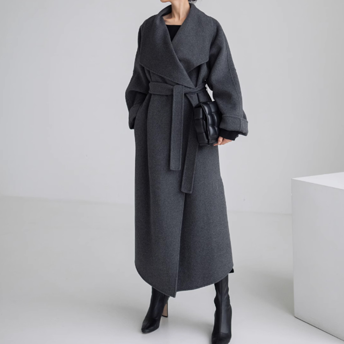 여성 마담 루즈핏 캐시미어 양면 울 롱 코트