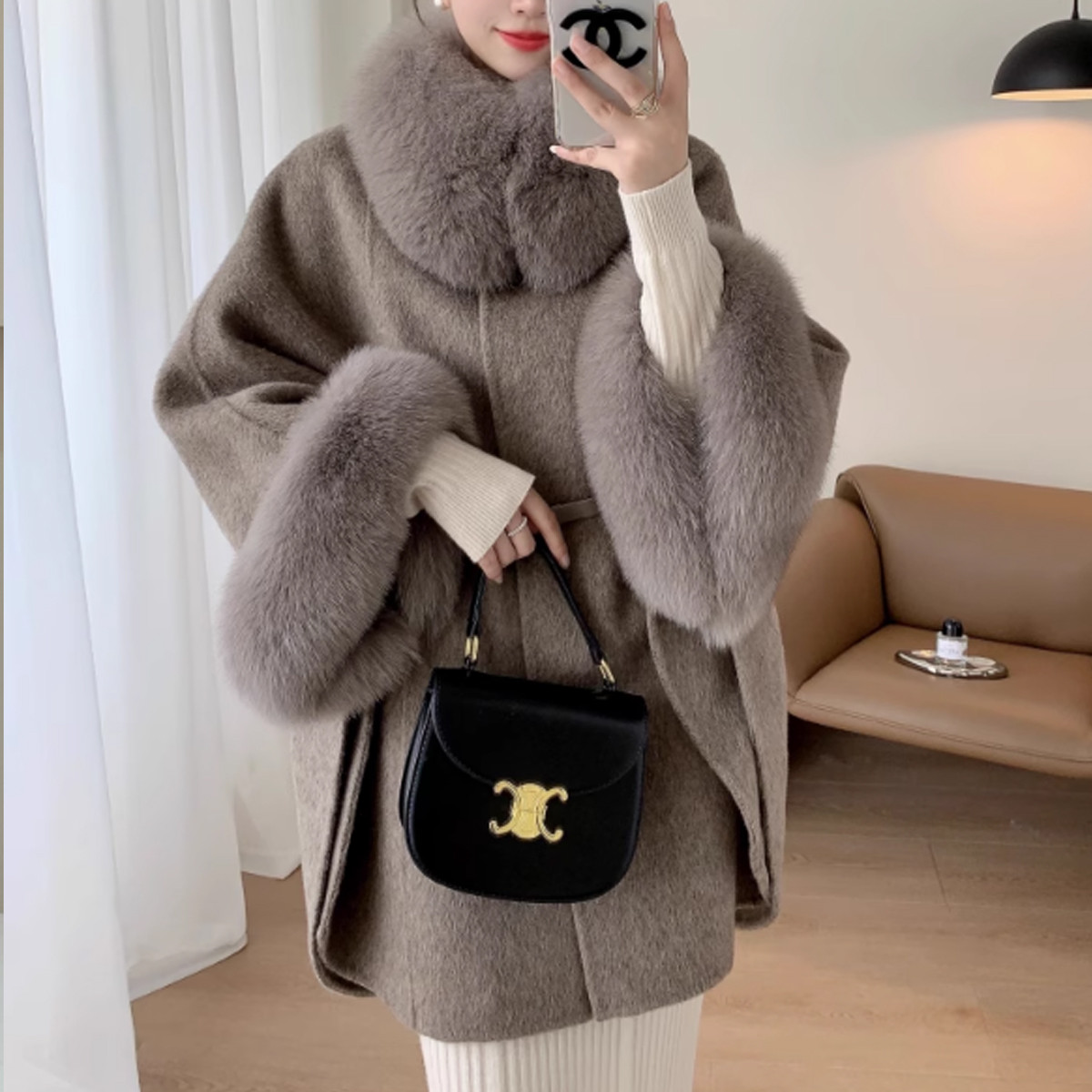 론데즈 리얼 폭스퍼 빅카라 울 캐시미어 롱 코트