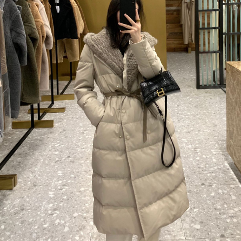 여성 하이닝 리얼 밍크 모피 후드 구스 다운 거위털100% 롱 패딩 벨트 한겨울 코트