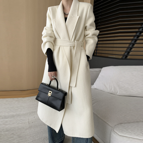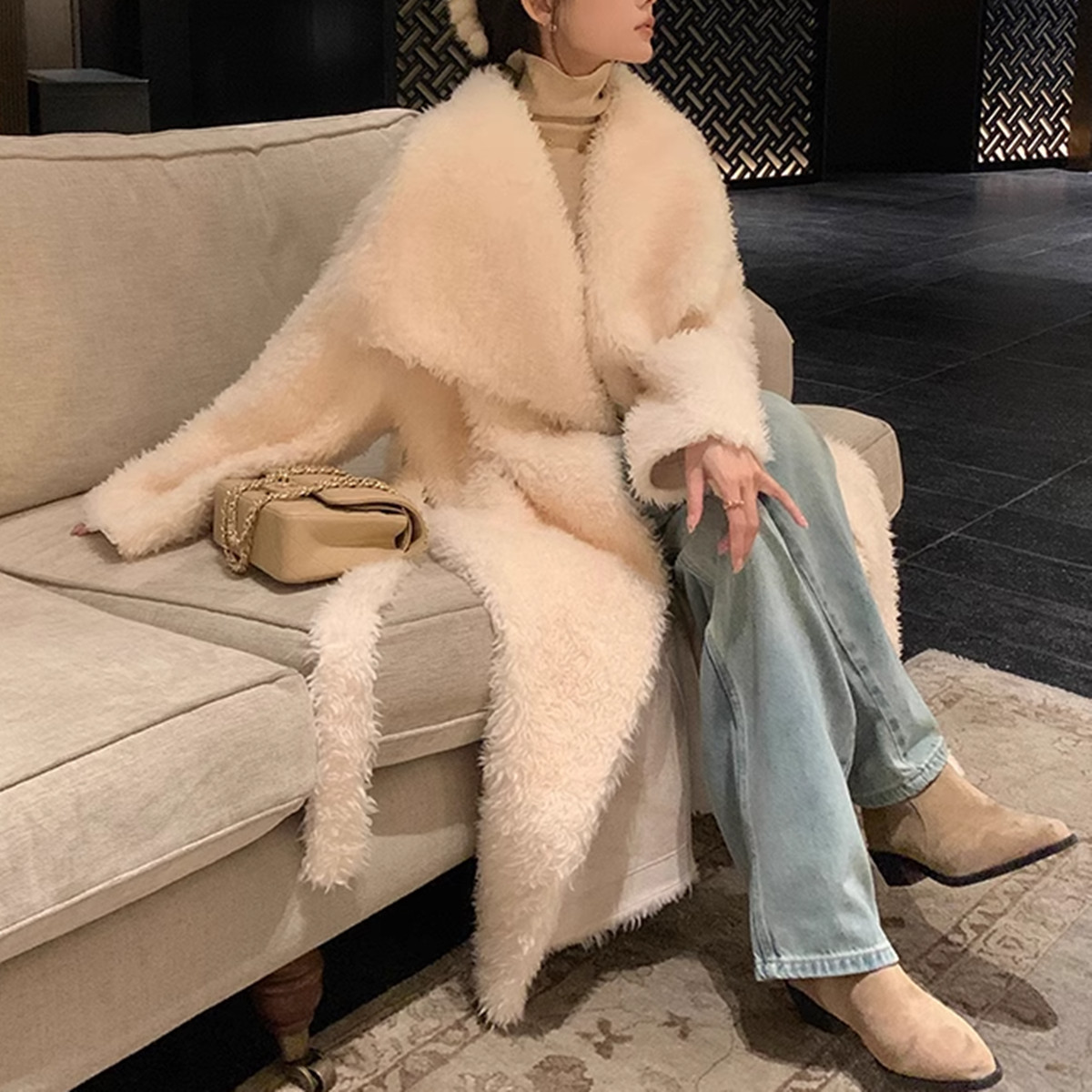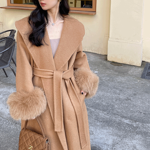 여성 겨울 LP 양면 알파카 캐시미어 밍크 퍼 트리밍 허리 벨트 롱 코트 2컬러