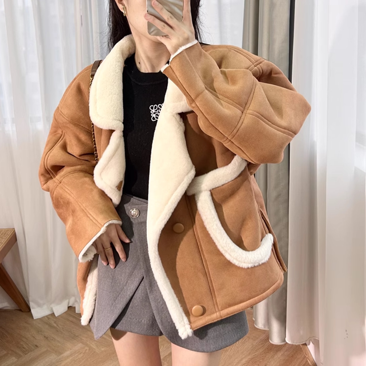 론데즈 수입 리얼 양털100 무스탕 모피 겨울 야구 점퍼 블루종 숏 스웨이드 자켓 2컬러