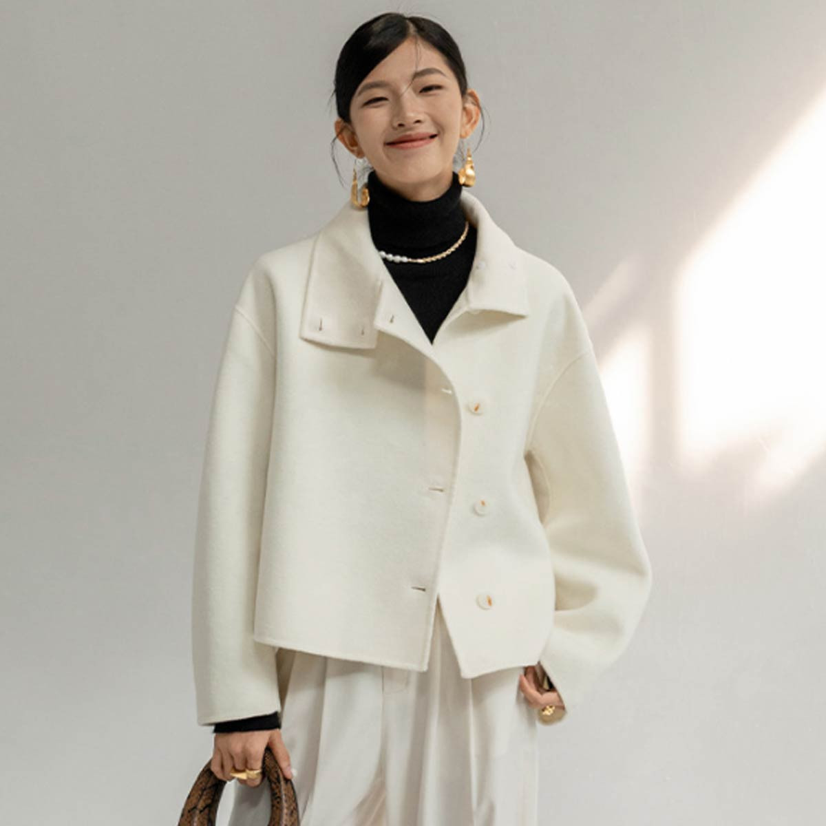 여성 소프트 양면 울100% 하이넥 칼라 루즈핏 자켓 숏 코트 4컬러