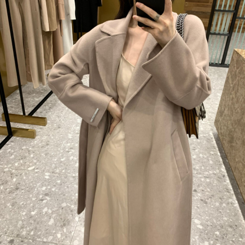 여성 겨울 막스 엘리사 양면 캐시미어 버진 울 100 벨티드 오버핏 롱코트 프리미엄 3컬러