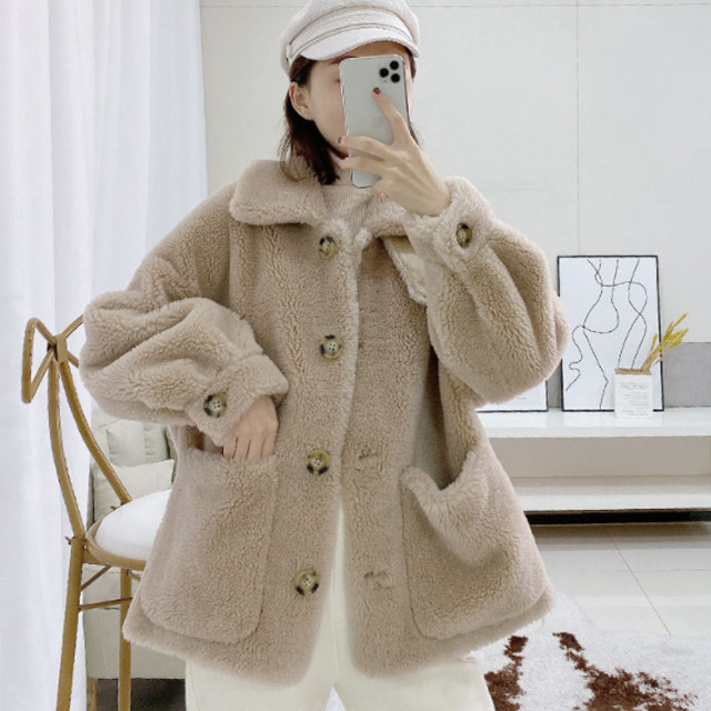 여성 겨울 스윗 리얼 양털100% 모피 후리스 자켓 테디베어 숏 코트