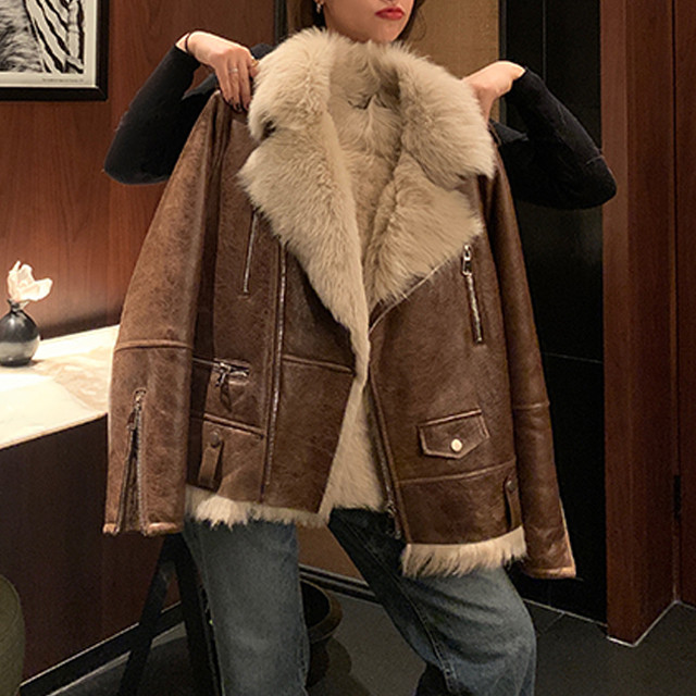 여성 겨울 리얼 폭스퍼 밍크퍼 여우 양가죽 모피 가죽 라이더 코트 자켓 4컬러