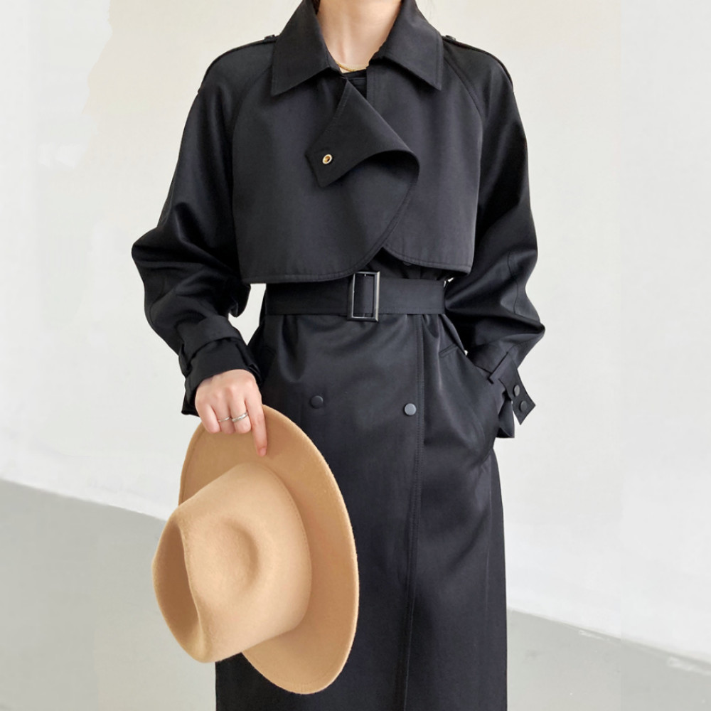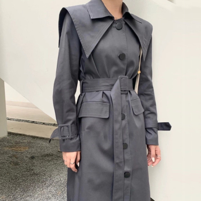 여성 봄 가을 케이프 빅버클 벨티드 간절기 트렌치 코트