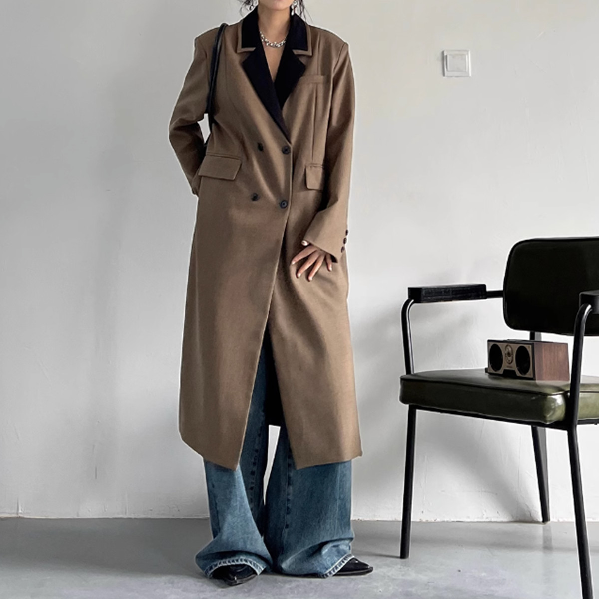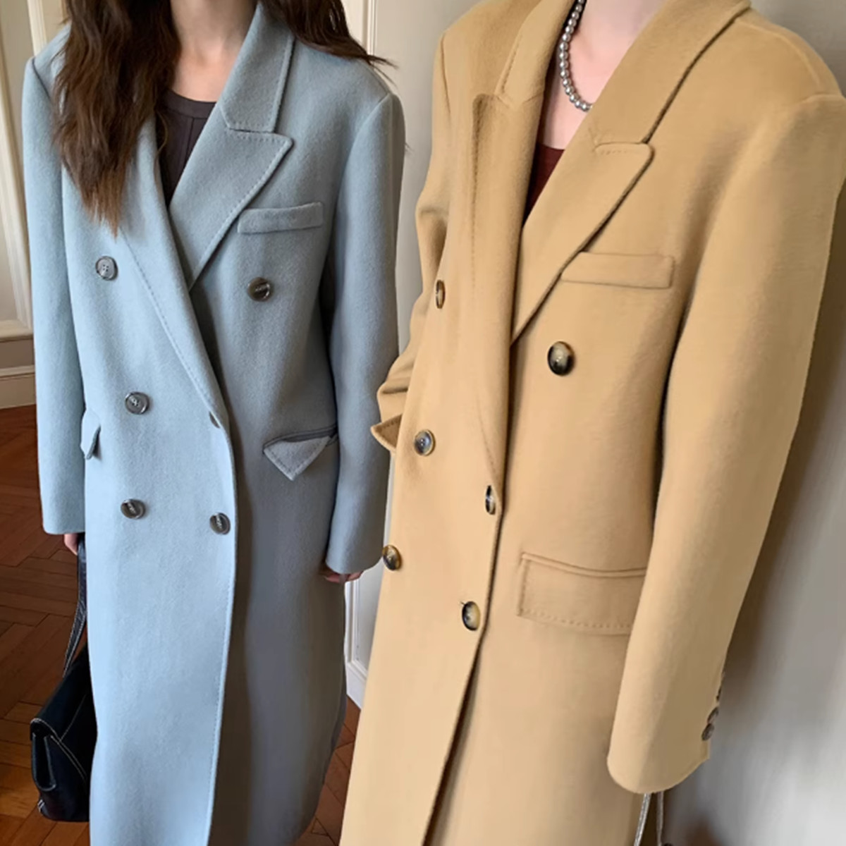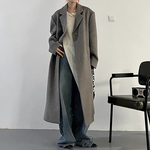 막스 라펠 하이앤드 루즈핏 양면 캐시미어 울 롱코트 2컬러