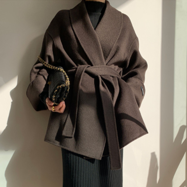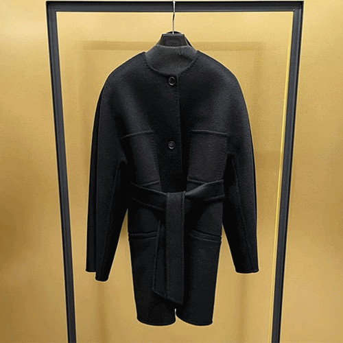 론데즈 막스 알바타 캐시미어 울 지블링 반코트 핸드메이드 노카라 벨티드 숏코트