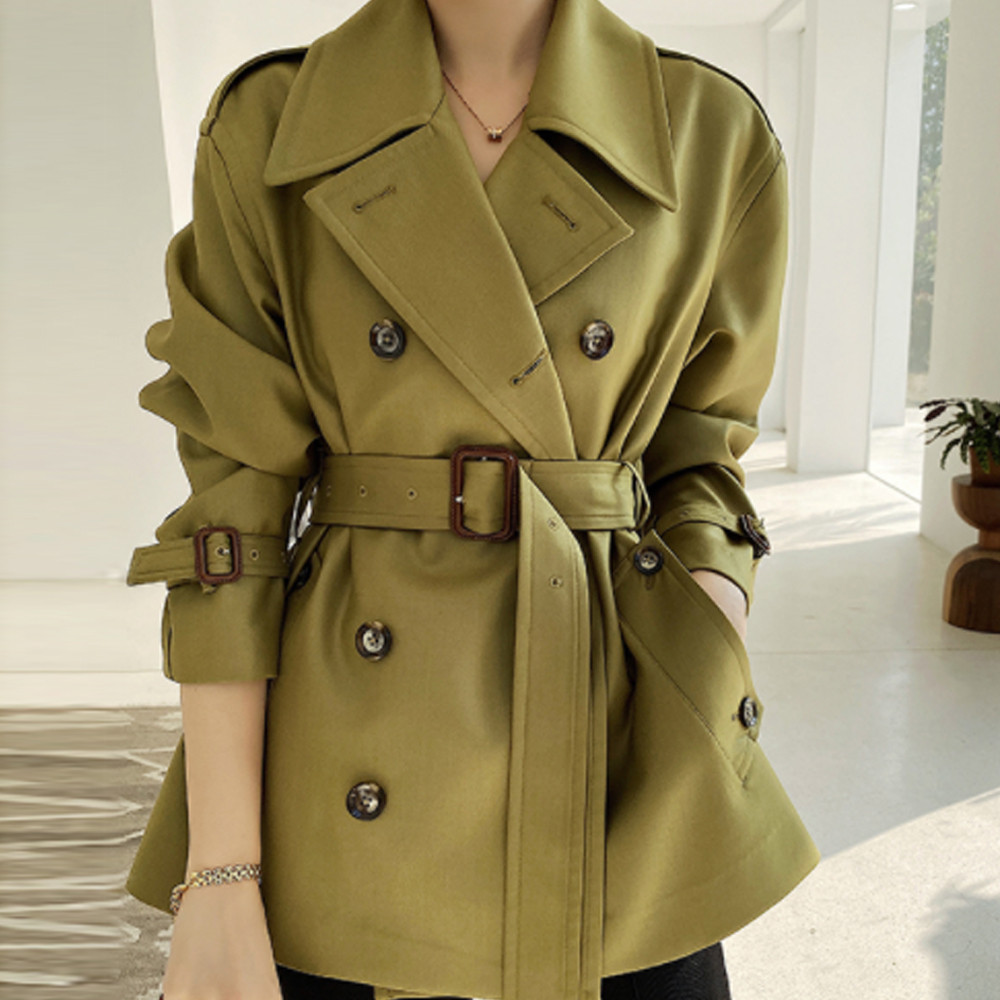 여자 봄 가을 더블 벨트 숏기장 바바리 슬림 트렌치 자켓