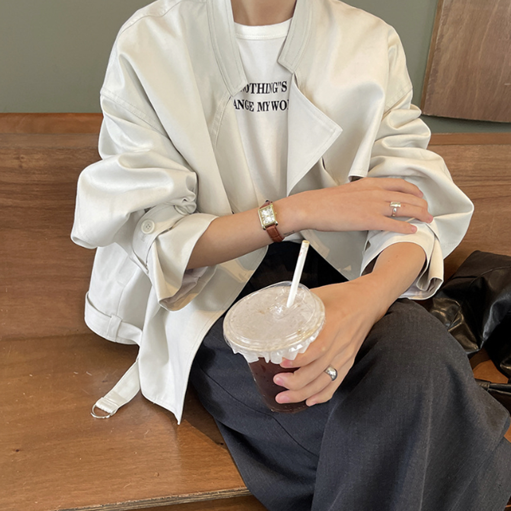 론데즈 여성 톰보이 하프 트렌치 봄코트 심플 싱글자켓