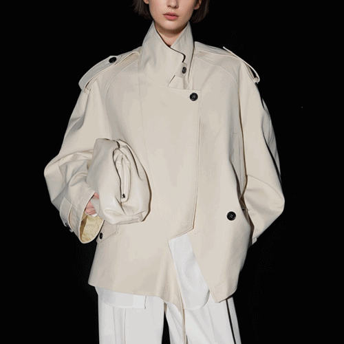 론데즈 더블브레스트 미들 숏 트렌치 자켓 코트 봄가을