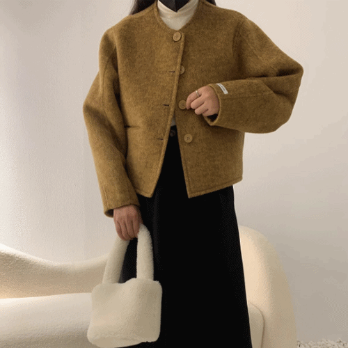 론데즈 노카라 루즈핏 핸드메이드 울 숏 자켓 코트