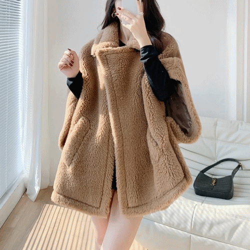 론데즈 와이드 케이프 양털 100 무스탕 테디베어코트