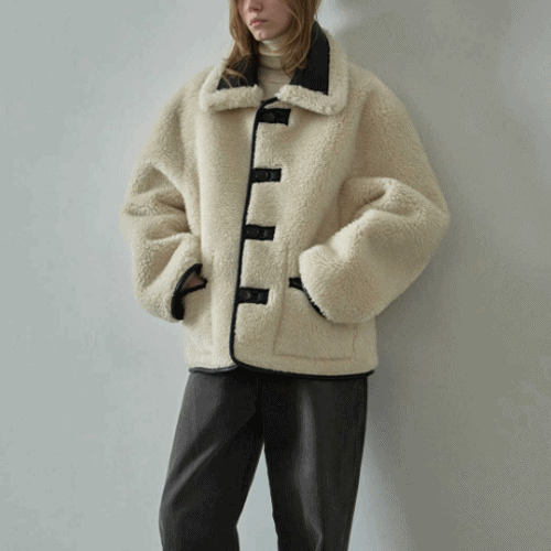 파티클 베이직 리얼양털100% 라운디 숏 무스탕 코트 자켓 4컬러