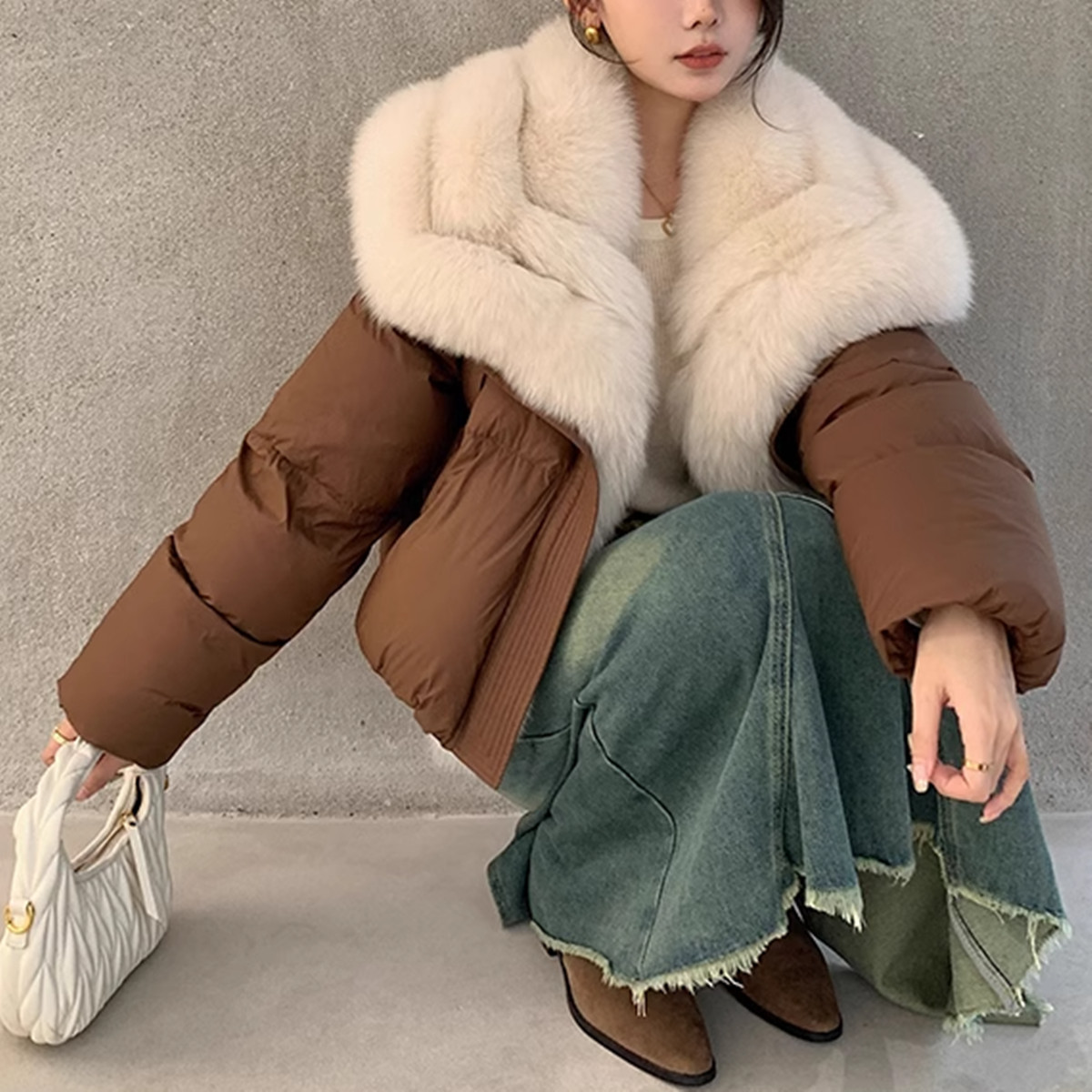 론데즈 와이드 폭스퍼숏패딩 구스 다운 크롭 점퍼