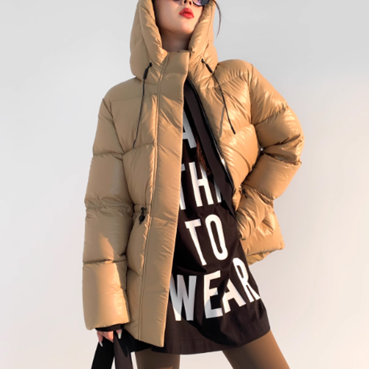여성 아메카지 가을 겨울 간절기 심플 루즈핏 오버핏 후드 웰론 패딩 점퍼