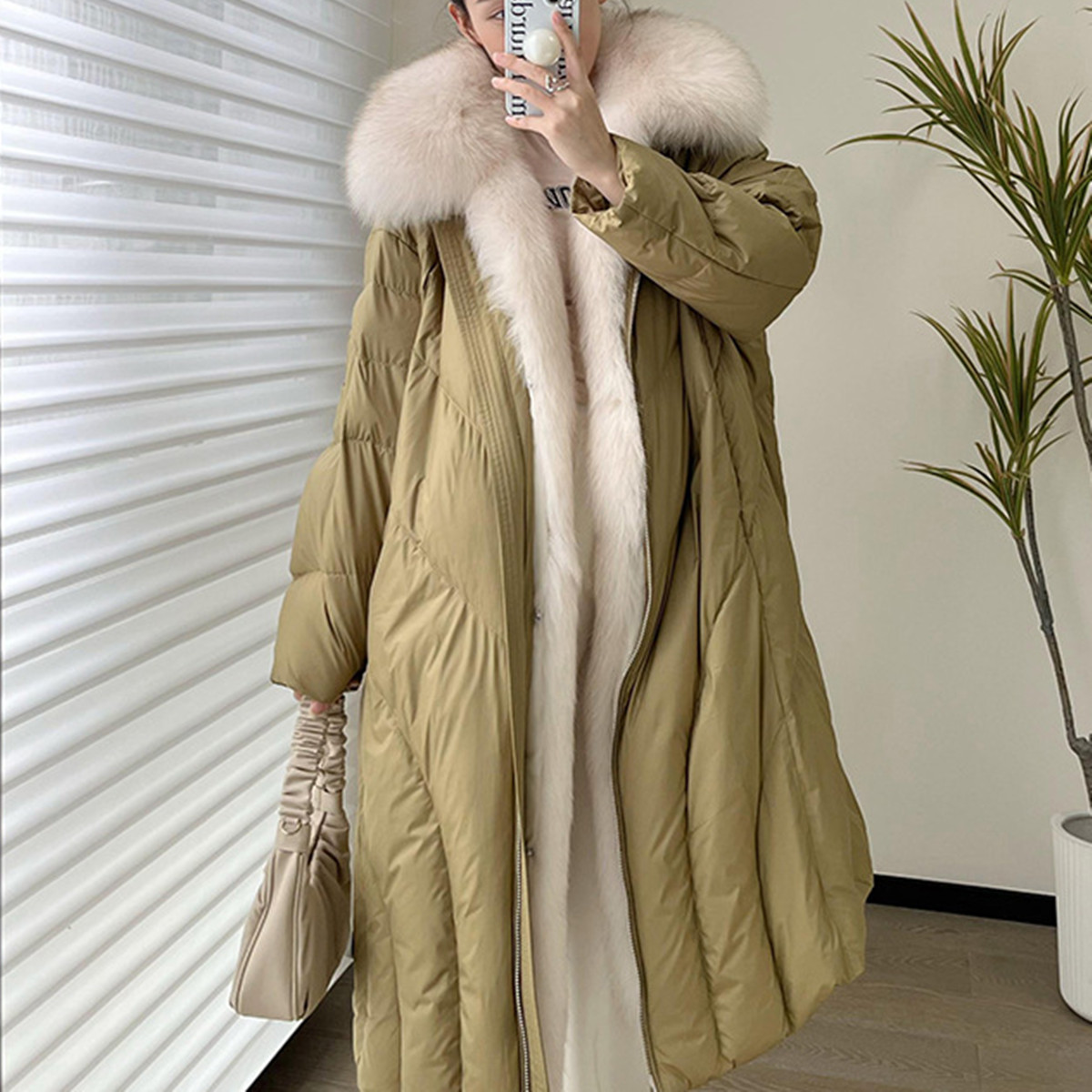 론데즈 오버핏 빅 폭스퍼 구스 롱 패딩 다운 점퍼