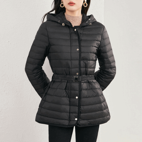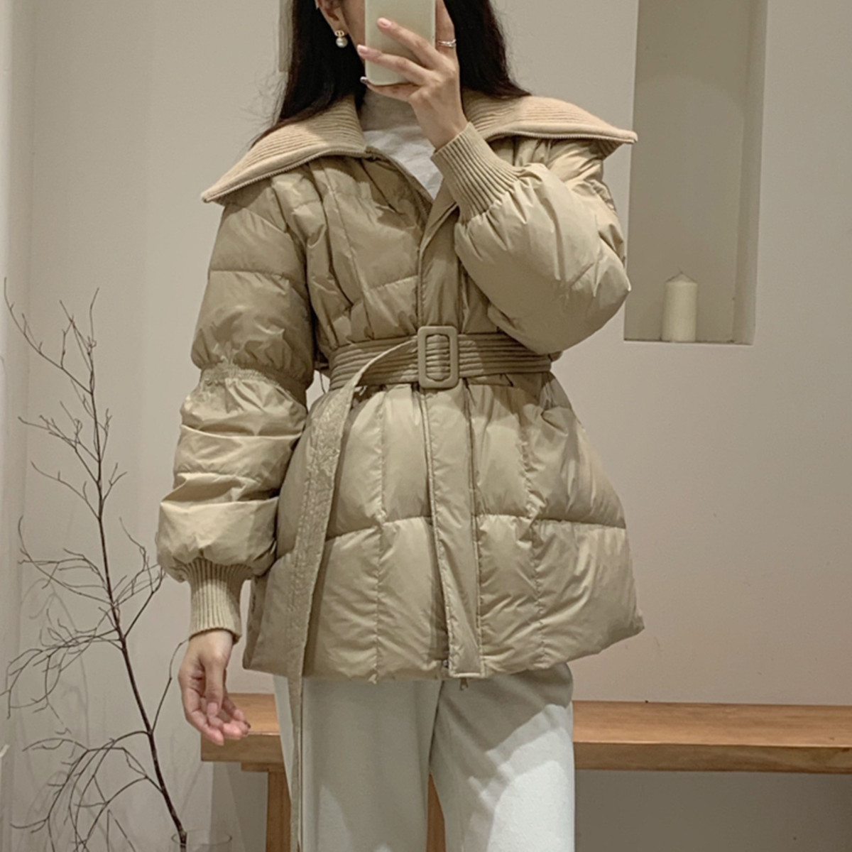 론데즈 슬림핏 벨티드 오리털 숏 패딩 다운 자켓