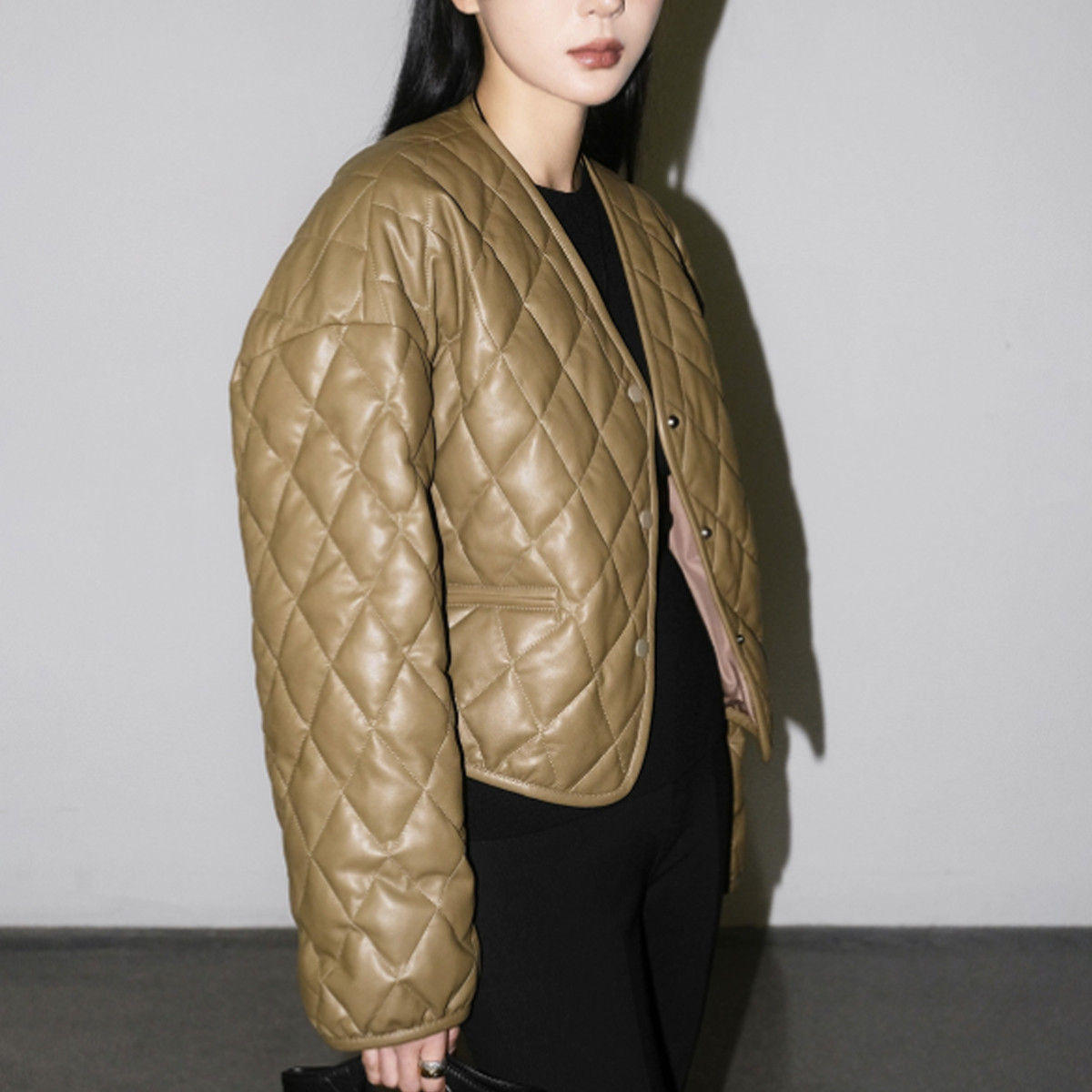 론데즈 오리털100 경량패딩 톰보이 숏 가죽 퀼팅 덕다운 여성 깔깔이 점퍼