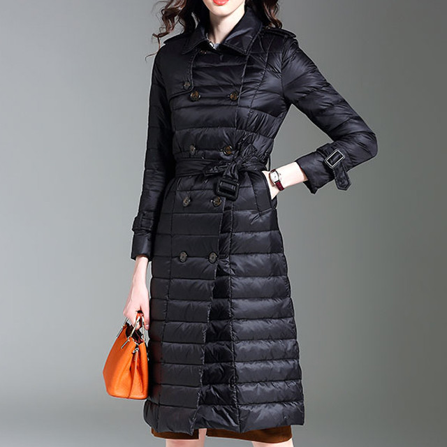 유러피안 더블브레스트 화이트 덕다운 오리털 트렌치 롱 패딩 자켓 2컬러