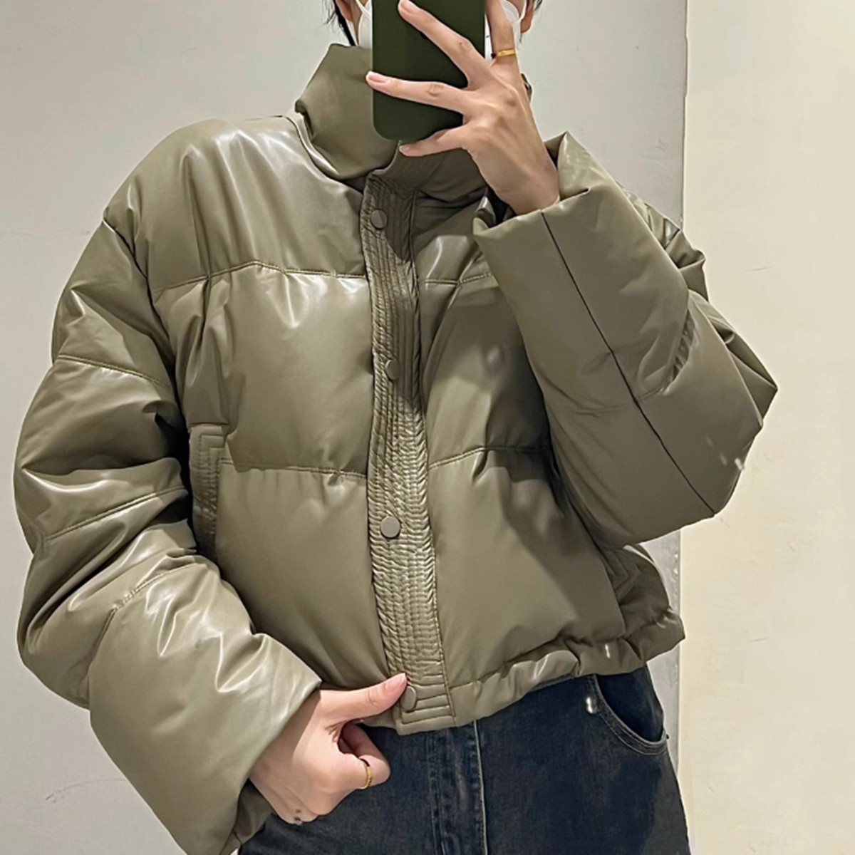 헤일리 여성 크롭 레더 봄버 패딩 점퍼 푸퍼 자켓