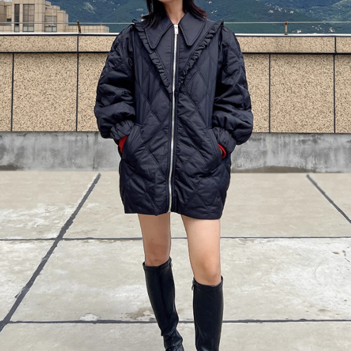 론데즈 톰보이퀼팅 점퍼 여성간절기패딩 프릴카라