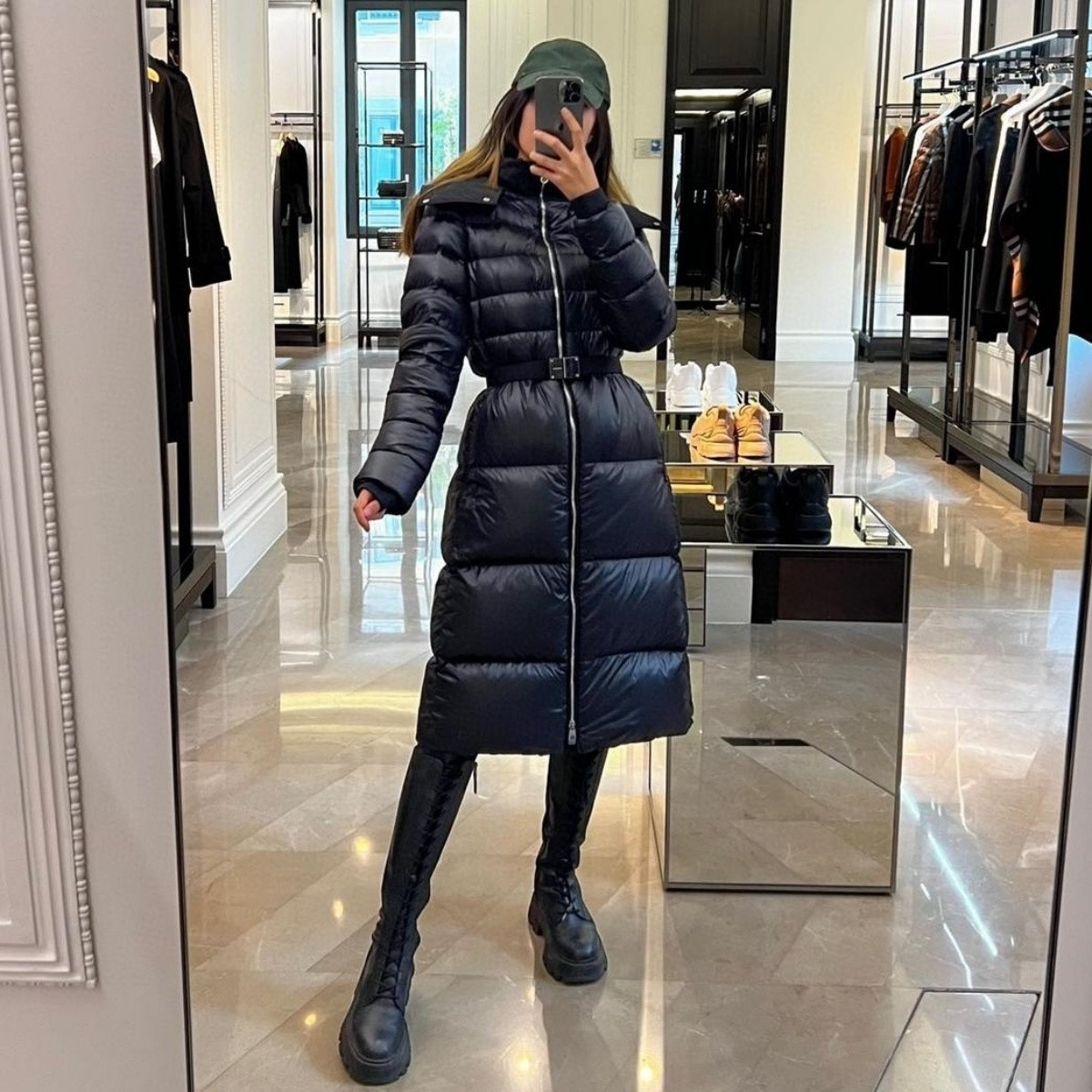 론데즈메종 B 클래식 구스 다운 거위털 패딩 벨트 후드 여성 한겨울 코트