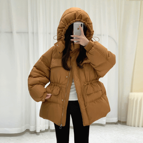 론데즈 오리털 빵빵 하이넥 후드 벨트 숏패딩 덕 다운 점퍼
