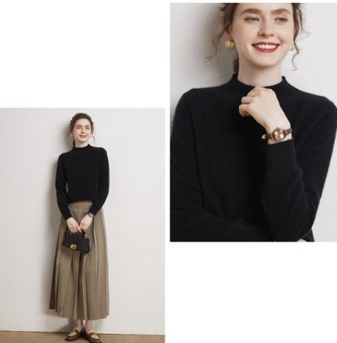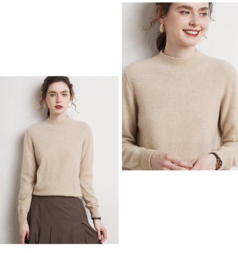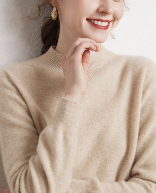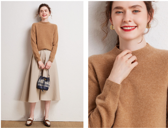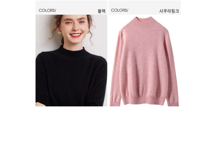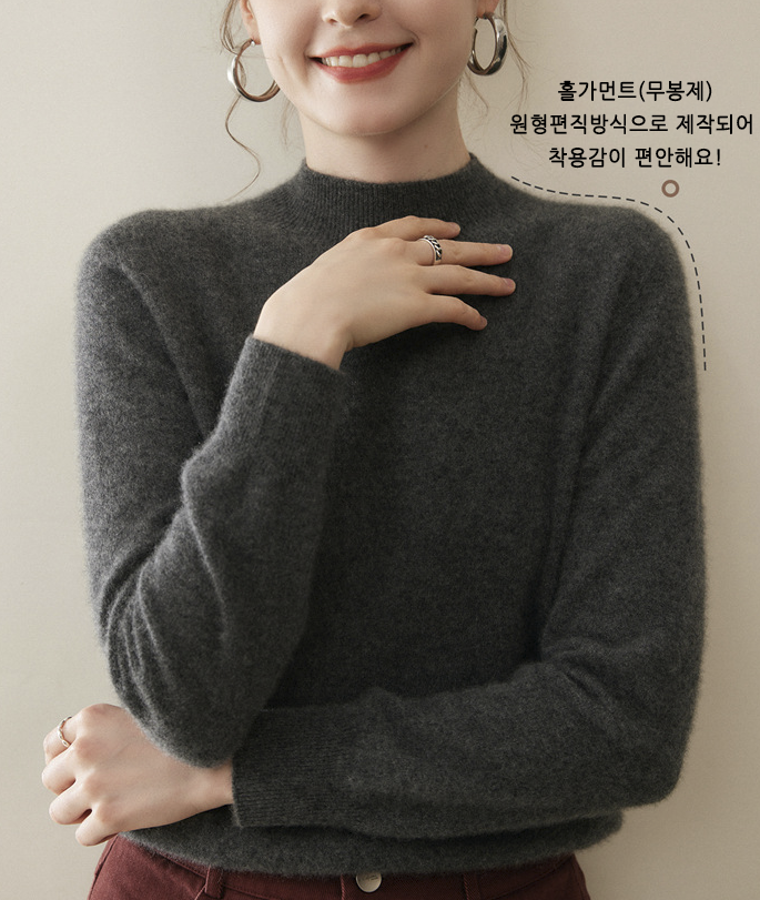 론데즈 캐시미어100 하프 목폴라 홀가먼트 니트