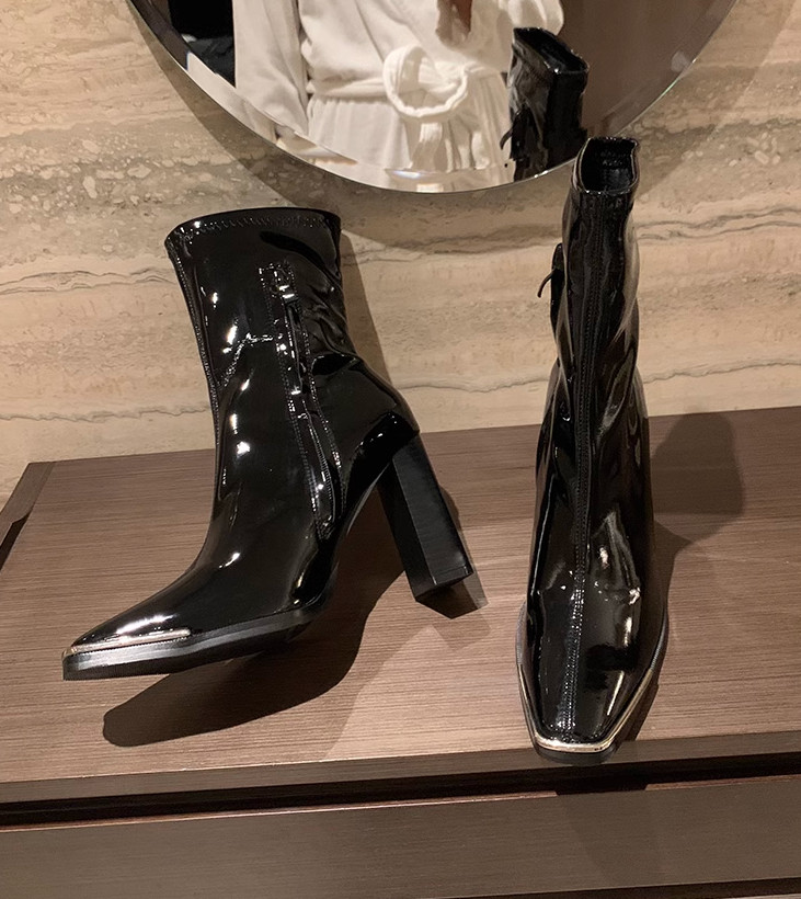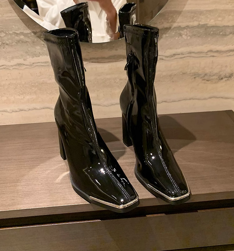 론데즈메종 에나멜 앵글부츠 메탈 스퀘어토 양가죽 삭스 슈즈